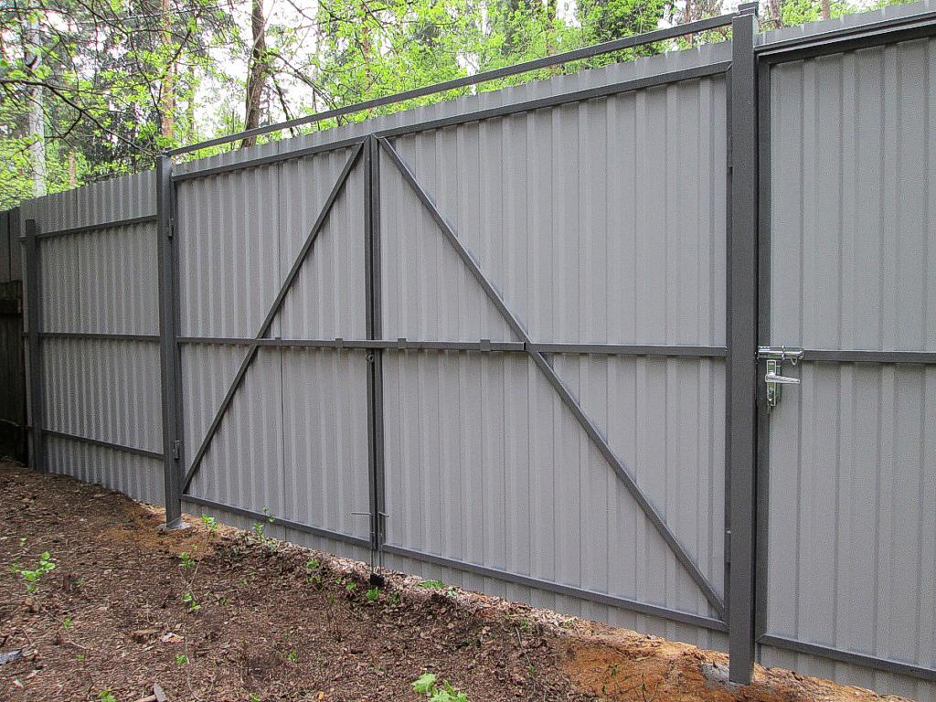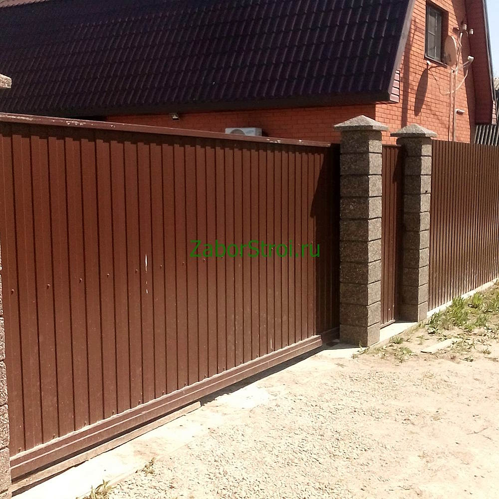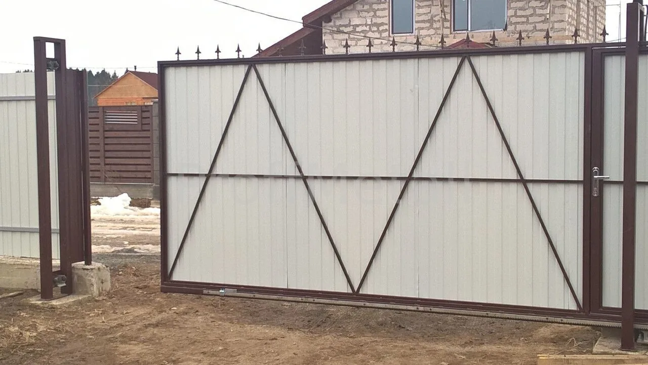 Откатные ворота из профнастила с встроенной калиткой