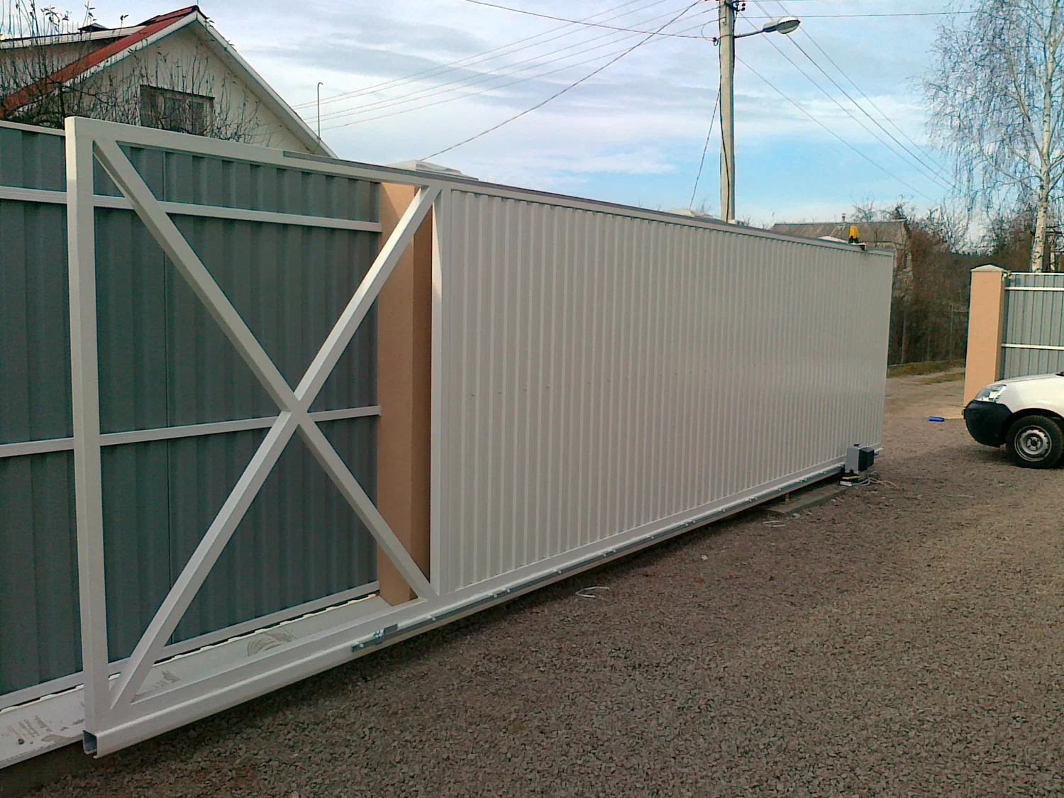 Откатные ворота из профнастила с автоматикой
