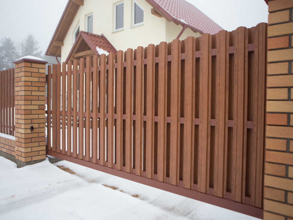 Откатные ворота из евроштакетника с встроенной калиткой